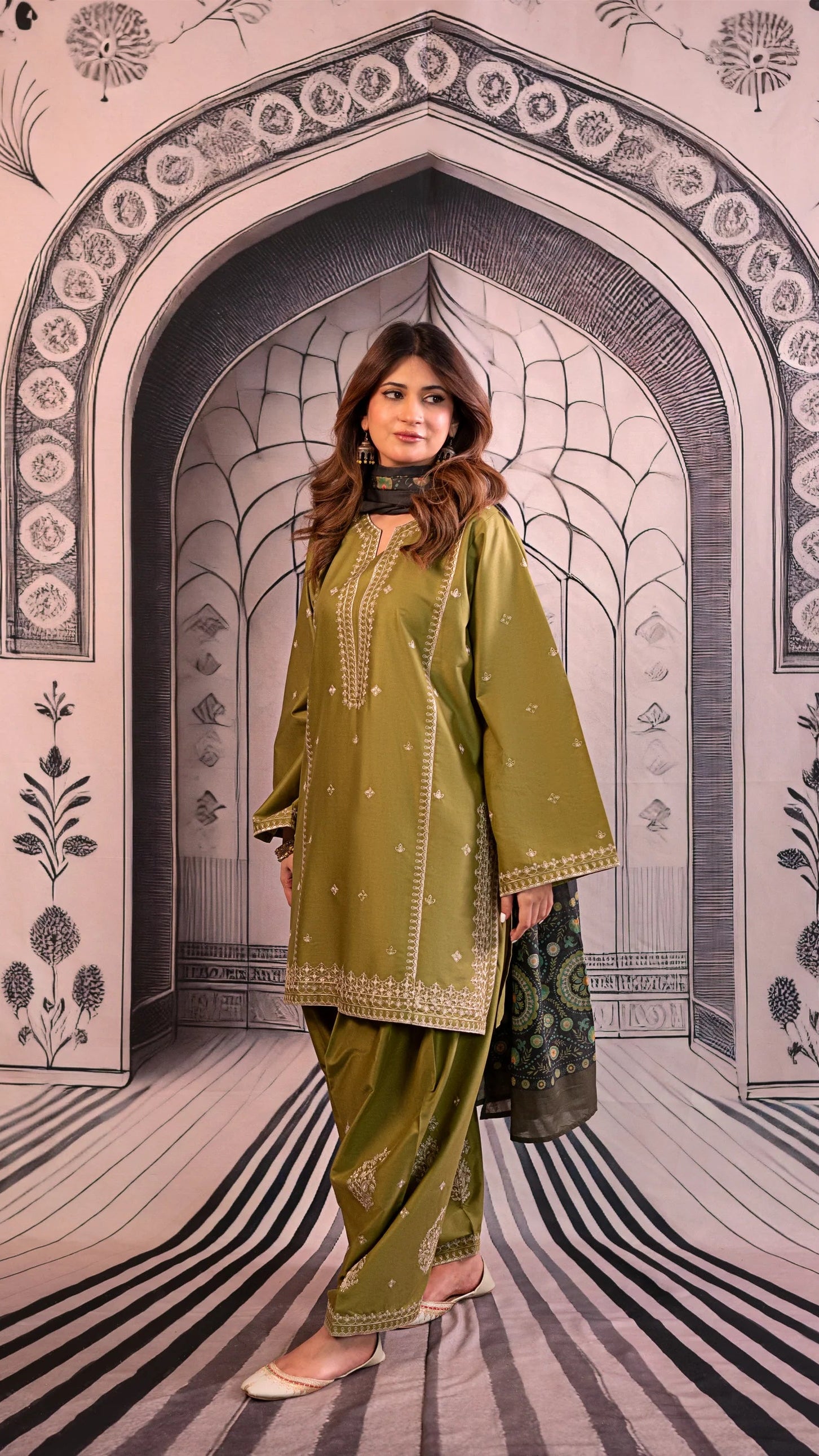 3PC LAWN EMBORIDED SHIRT SLEEVES PRINTED DUPATA 108-ALL D-1599