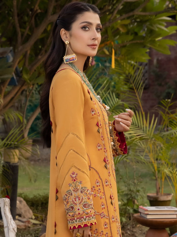 3PC UNSTITCHED LAWN Embroidered SHIRT SLEEVES PLAIN TROUSER PRINTED DUPATA 325-A