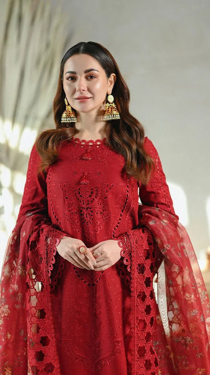 LAWN 3PC CHIKENKARI EMBROIDERED SHIRT PLAIN TROUSER